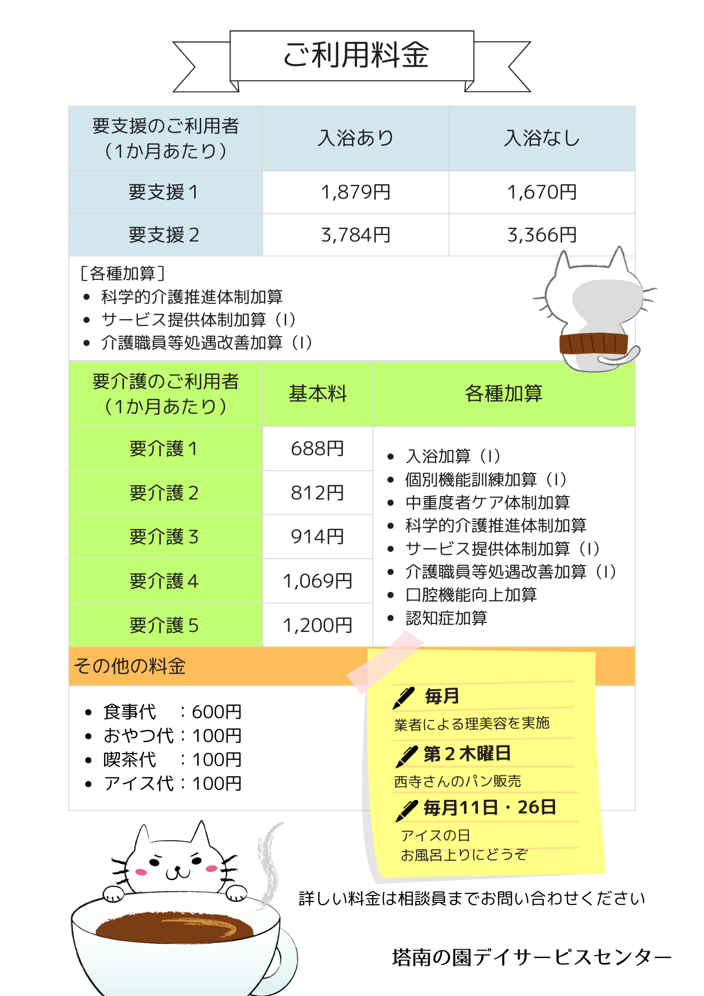 | デイサービスセンター | 午前9時30分~午後4時45分 |