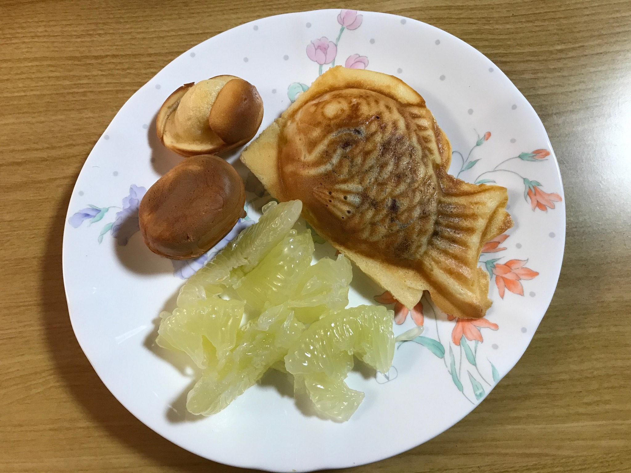 【2月23日のカフェ】 大寒波到来で雪模様の予報でしたが、カフェは3月の雛祭りの準備をします。吊るし雛ってご存じですか? 江戸時代から始まったそうで、雛人形だけでなく、動物やお花、衣服、遊び道具や野菜など、いろいろなものを作って吊るすそうです。今回は男雛と女雛や鶴などを皆さんが折り紙で折って吊るします。折り方の図を見ながら、和柄の折り紙で頑張って折られました。さて折り紙のお雛様を吊るしたら、子門真人の「およげ!たいやきくん」の歌が流れてきました。オット! 子門真人に仮装した人、たい焼きの被りものをかぶった人が登場して、ミニたい焼きを焼き始めました。ベビーカステラも焼いて、おやつの時間です。利用者さん達の目の前でたい焼きを焼くというスタッフのパフォーマンスに、最初は唖然とされた皆さんも大喜びです。目の前の焼きたてを食べるって、いいですね (^_-)頂き物の「土佐文旦」は香り高く、日本産グレープフルーツと言える美味しさでした。